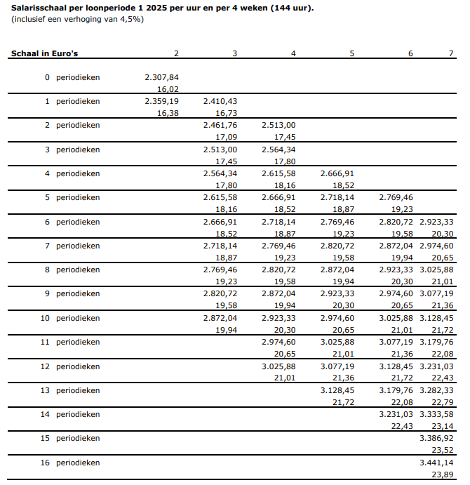 Ontdek de salarisschalen voor de Hulp bij het Huishouden vanaf 1 juli 2025 volgens cao VVT artikel 4.2.2, inclusief maandsalaris, periodesalaris en uurloon. Plan je toekomst nu.