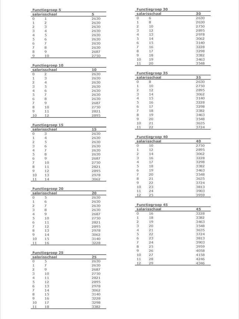 Ontdek de salarisstijgingen vanaf januari voor verschillende functiegroepen. Groep 2, trede 3 stijgt met 4,30%. Bekijk gedetailleerde informatie over hoe deze veranderingen jouw positie kunnen beïnvloeden.